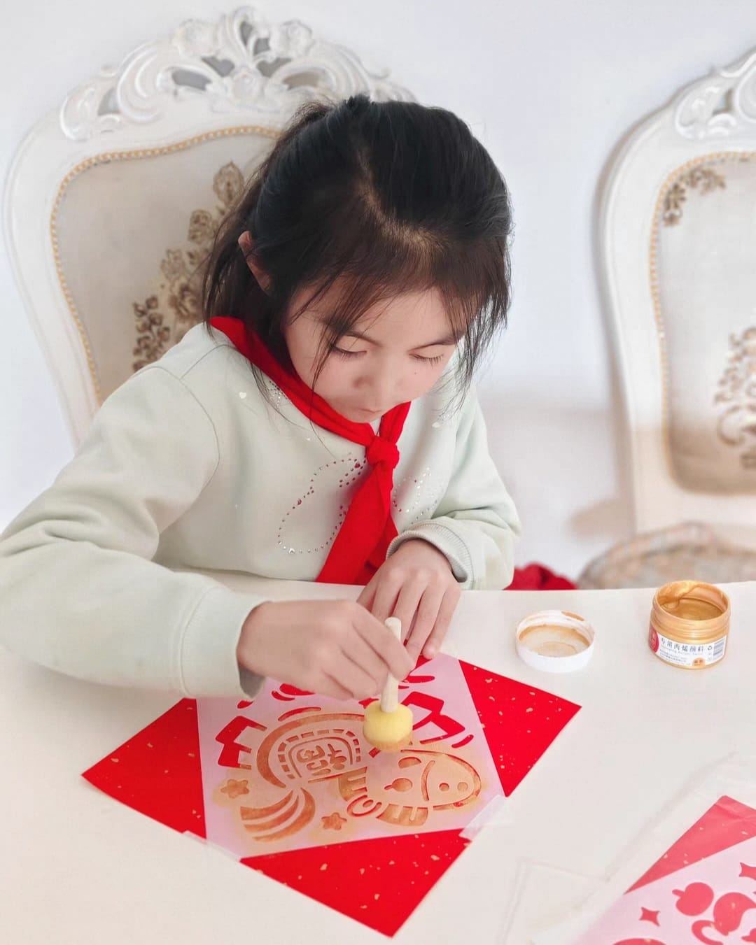 Children will create their own lucky “Fu” character artwork using a traditional rubbing (拓印) technique, revealing patterns through touch and texture.